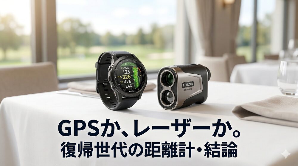 見ての通り、GPS腕時計は『ラウンドのリズム』を重視したい復帰勢の味方。一方でレーザー距離計は、スコアを競う真剣勝負に不可欠な精密さを持っています。ご自身の今のプレースタイルに、どちらが寄り添ってくれるかで選んでみてください。