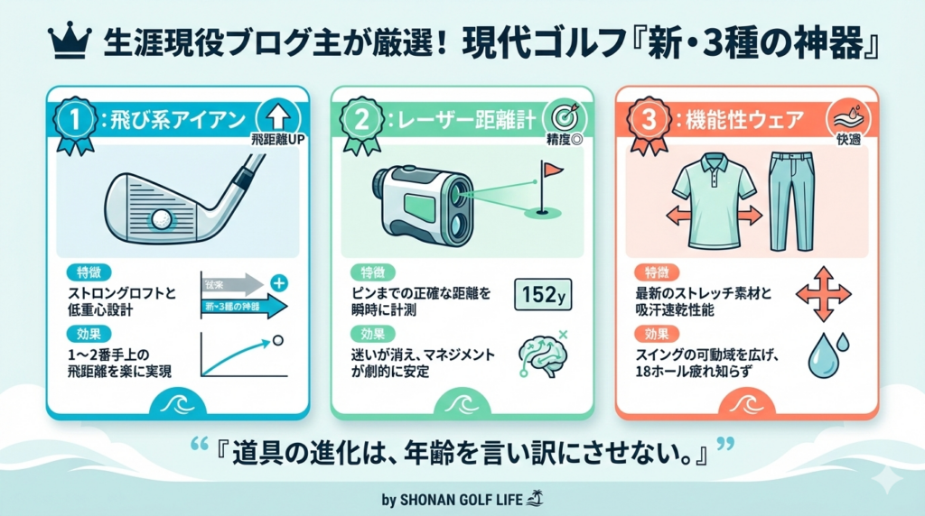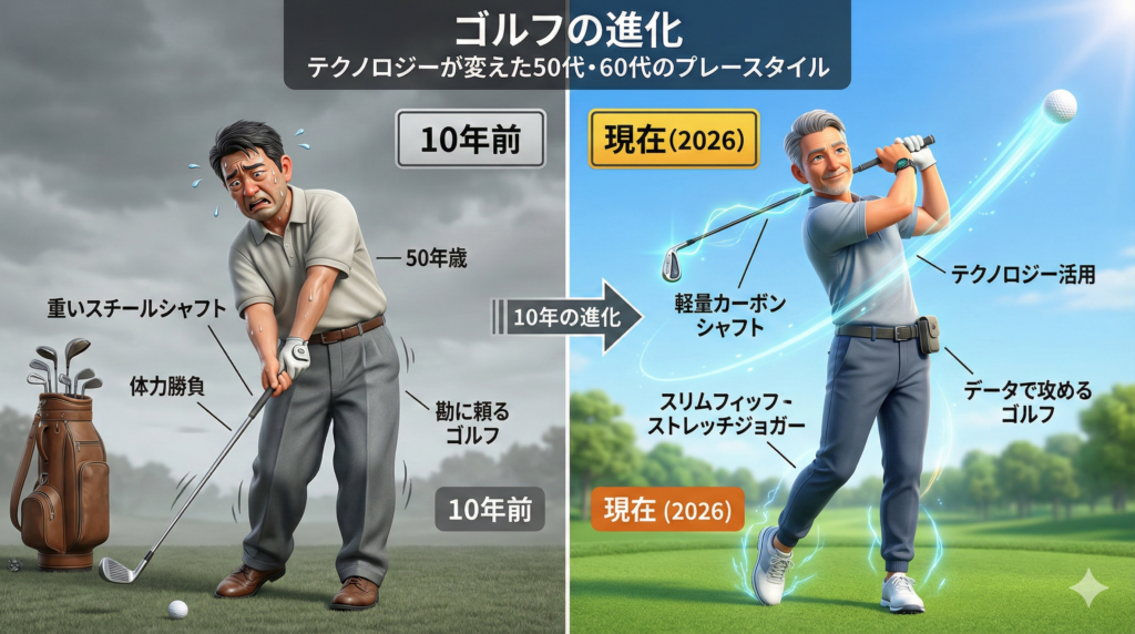 「最近、飛距離が落ちてきたな……」と感じているなら、それは技術や体力の衰えだけが理由ではありません。今のクラブテクノロジーに頼る時期が来た、ただそれだけのこと。
